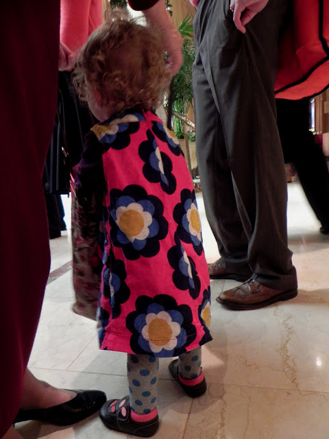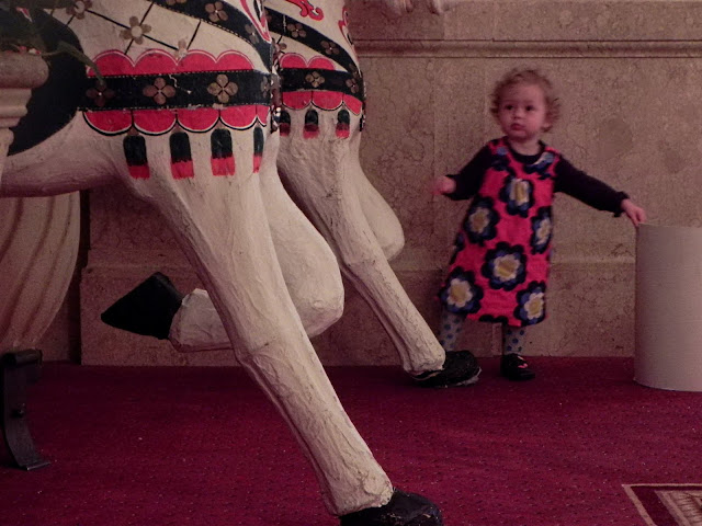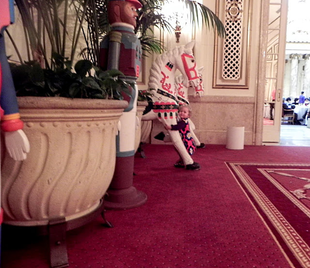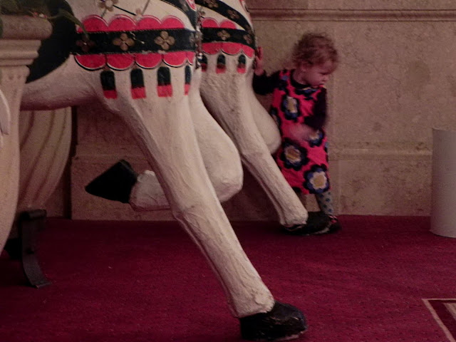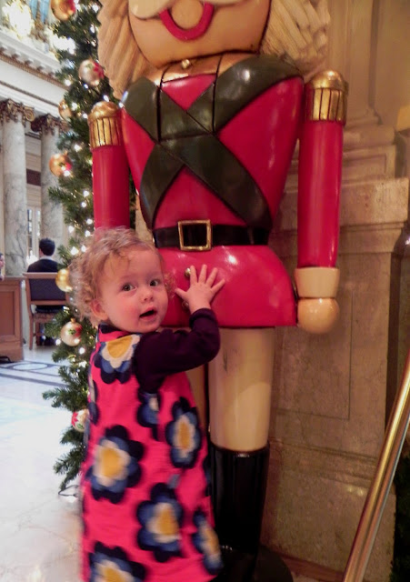 And we ended by admiring a pair of gigantic nutcrackers standing guard at the archway. Buttons are one of Mabel's many current interests, and the buttons on the nutcracker's uniform were admirably three-dimensional.