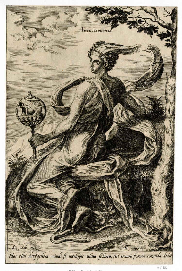 | published by Hieronymus Cock engraved by Cornelis Cort after a design by Frans Floris The Virtues - Intelligentia 1560 engraving British Museum |