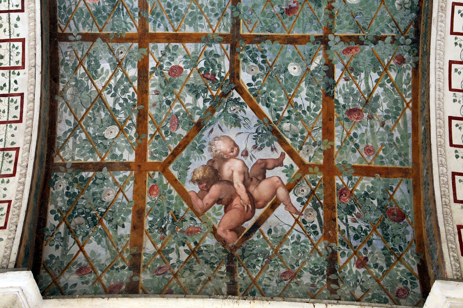 | Pietro Venale and assistants Decorative Arbor with Fauns and Putti 1552-53 overdoor fresco Garden Pergola, Villa Giulia, Rome |